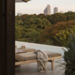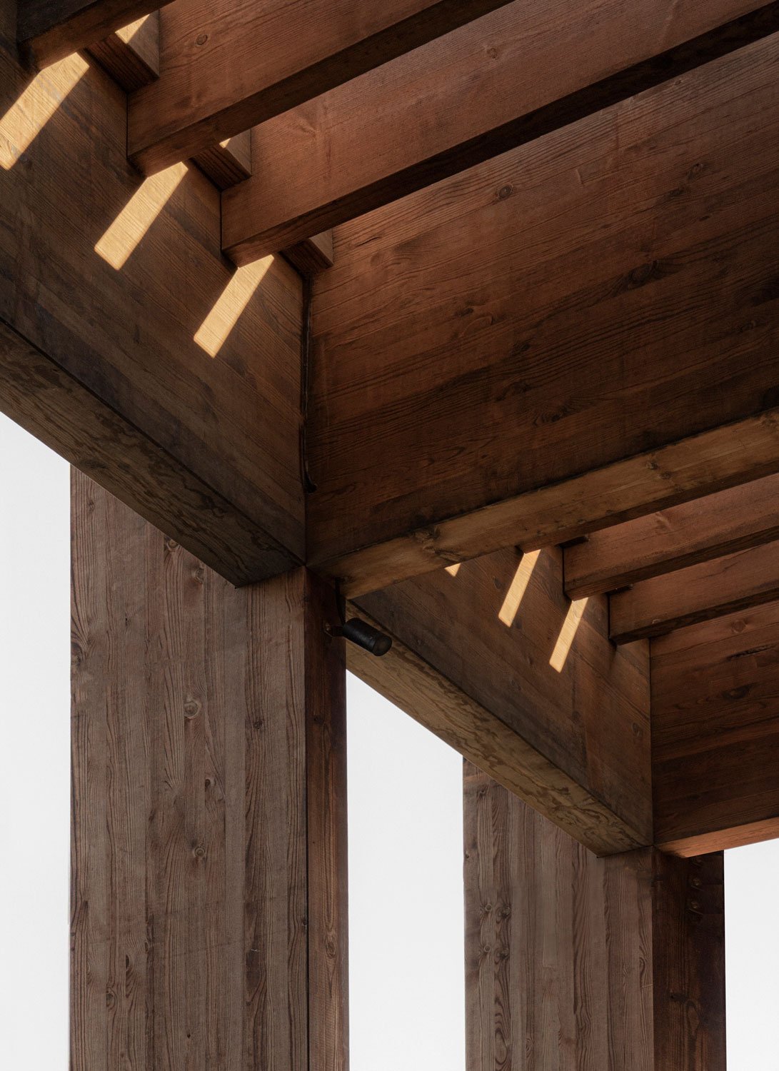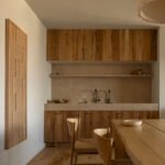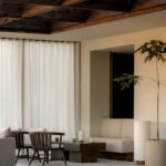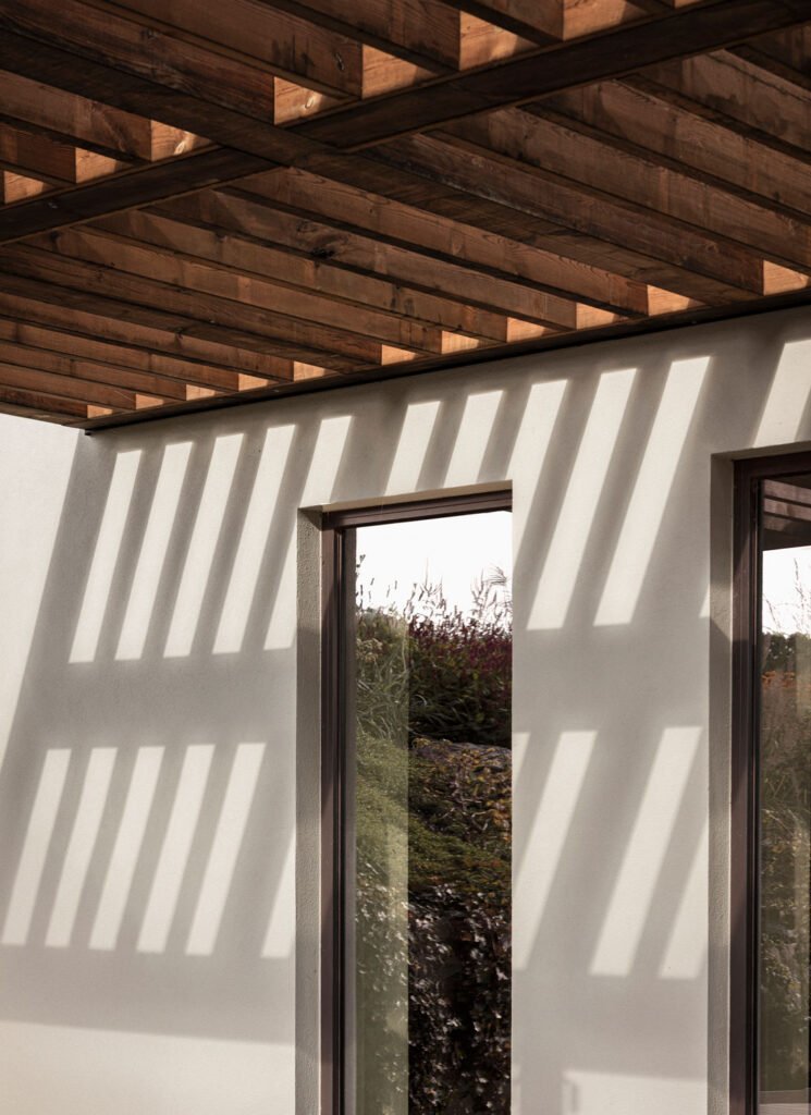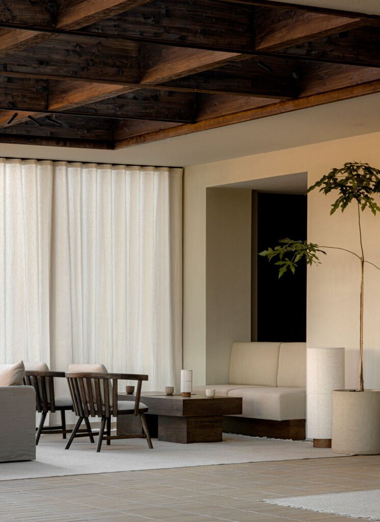 At the entrance, a wooden pergola frames the arrival with a sense of calm, inviting guests to slow down even before stepping inside.