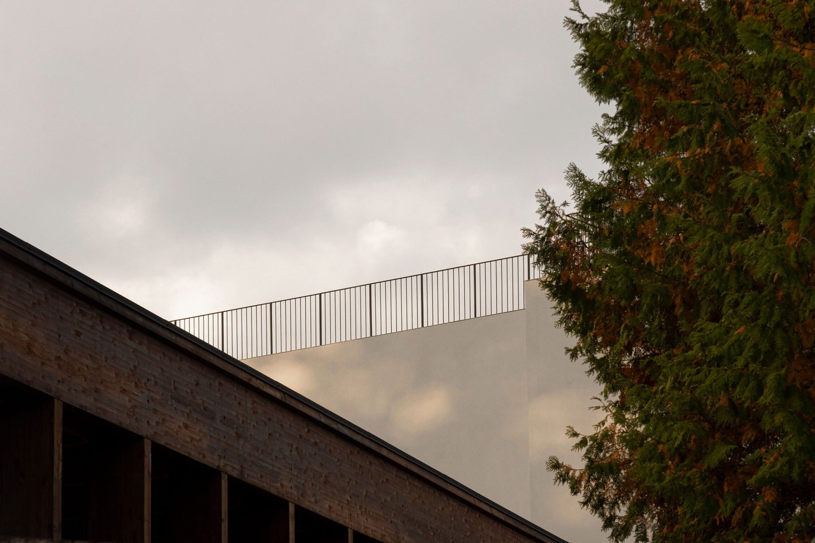 The modern façade of clean lines contrasts the surrounding forest and spa buildings, while broad stairways and rhythmic railings become integral architectural gestures – drawing the eye upward, downward, and across the sweeping topography. Green roofs continue the language established in Sjöparken, tying Vinhuset into the larger estate while allowing it to also carry its own more rural, raw, and grounded identity in the new extensions as well as interiors.